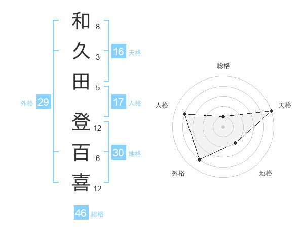 和久田 登百喜さんを姓名の画数から五運を鑑定