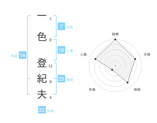 一色 登紀夫さんの総格は32画の5点!