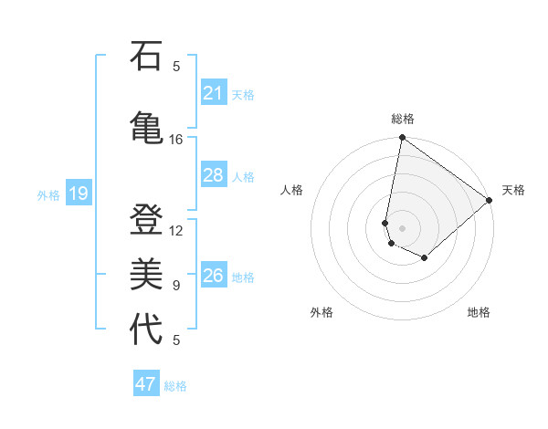 石亀 登美代さんを姓名の画数から五運を鑑定