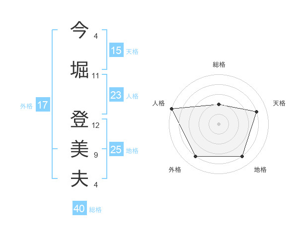 今堀 登美夫さんを姓名の画数から五運を鑑定