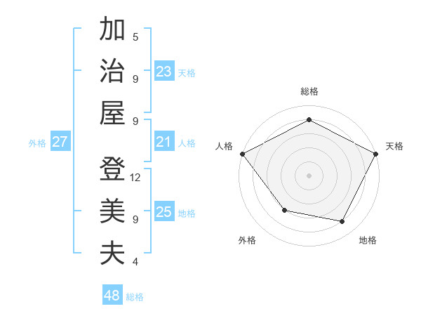加治屋 登美夫さんを姓名の画数から五運を鑑定