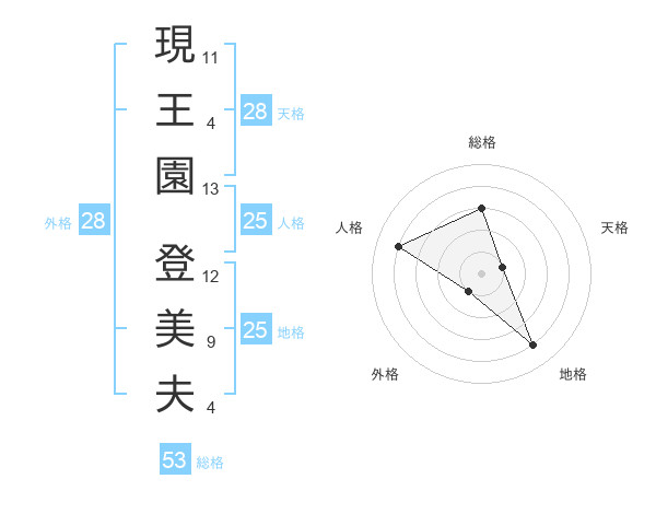 現王園 登美夫さんを姓名の画数から五運を鑑定
