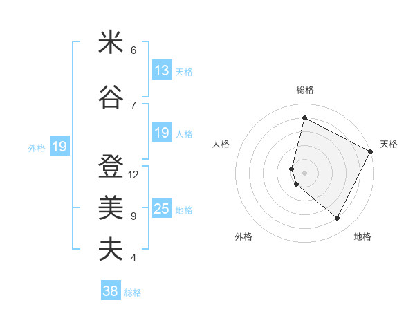 米谷 登美夫さんを姓名の画数から五運を鑑定