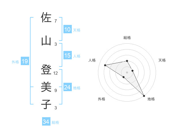 佐山 登美子さんの総格は34画の2点!