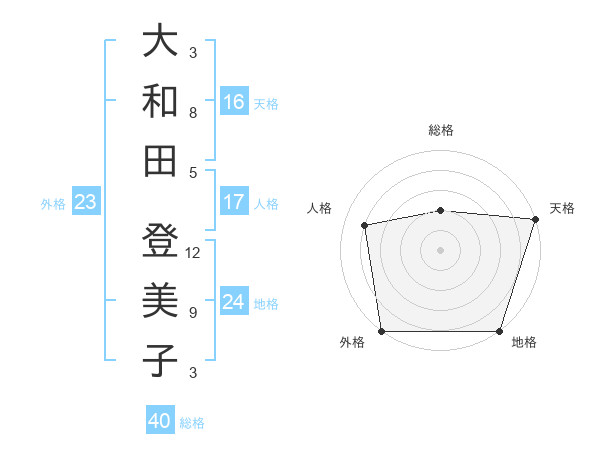 大和田 登美子さんを姓名の画数から五運を鑑定