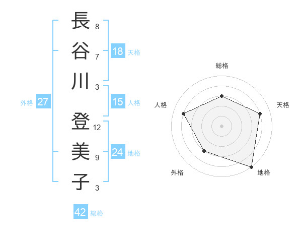 長谷川 登美子さんを姓名の画数から五運を鑑定
