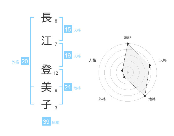 長江 登美子さんの地格は24画の5点!