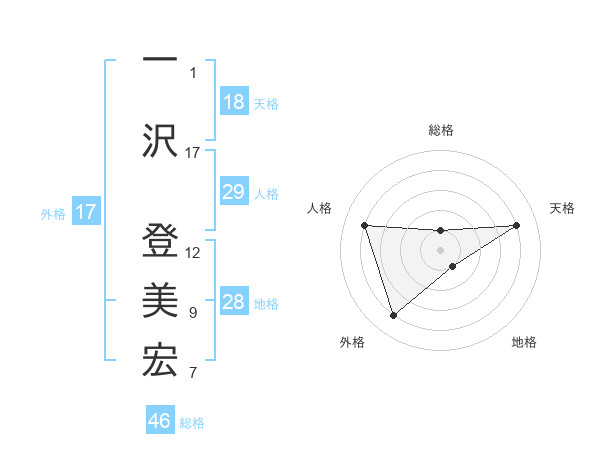 一沢 登美宏さんを姓名の画数から五運を鑑定