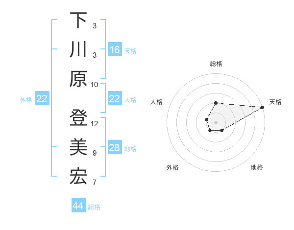 下川原 登美宏さんを姓名の画数から五運を鑑定