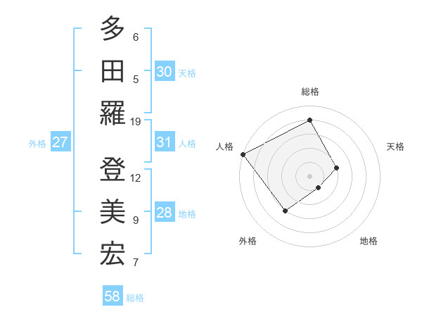 多田羅 登美宏さんを姓名の画数から五運を鑑定