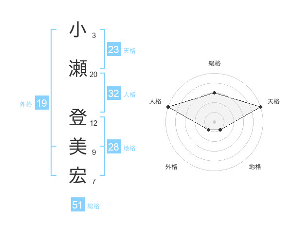 小瀬 登美宏さんの総格は51画の3点!
