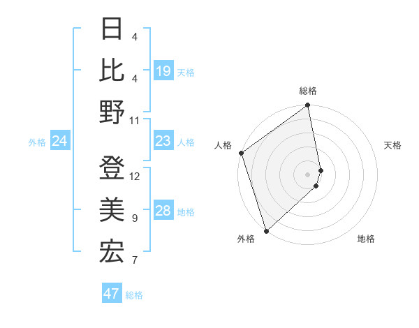 日比野 登美宏さんを姓名の画数から五運を鑑定