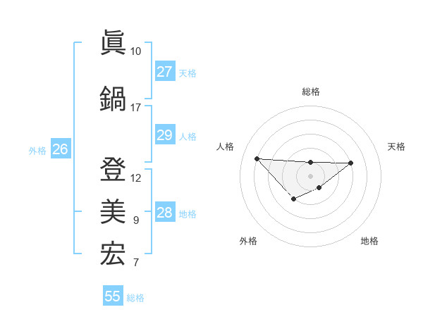 眞鍋 登美宏さんを姓名の画数から五運を鑑定