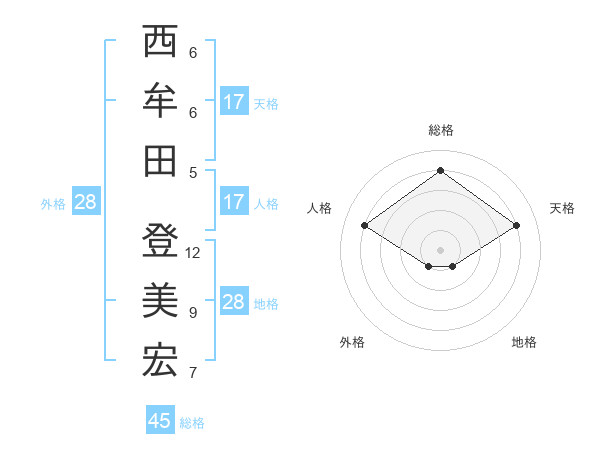 西牟田 登美宏さんの天格は17画の4点!