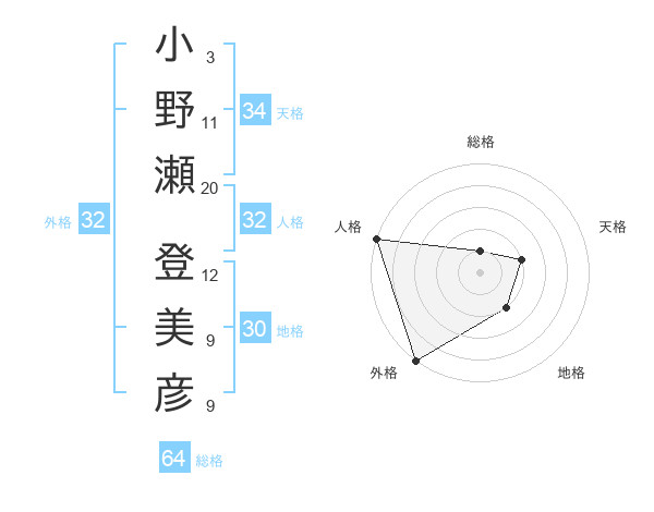 小野瀬 登美彦さんを姓名の画数から五運を鑑定