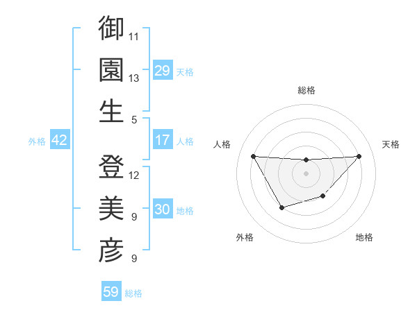 御園生 登美彦さんの総格は59画の1点!