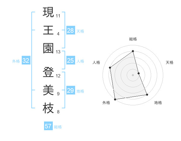 現王園 登美枝さんを姓名の画数から五運を鑑定