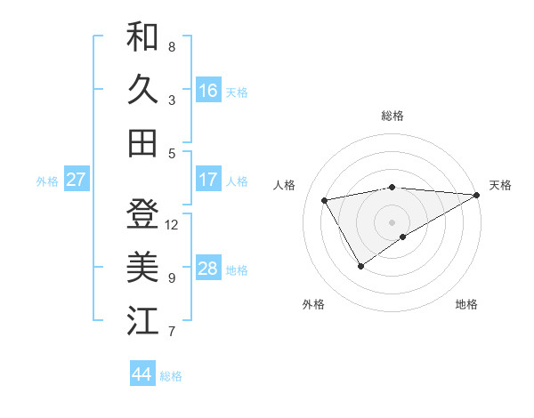 和久田 登美江さんの総格は44画の2点