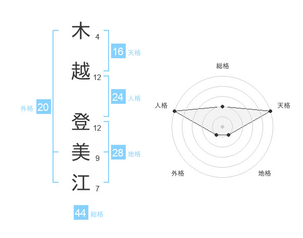 木越 登美江さんの総格は44画の2点!