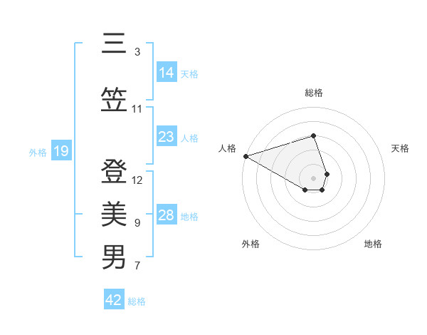 三笠 登美男さんの総格は42画の3点!