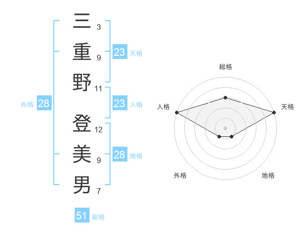 三重野 登美男さんを姓名の画数から五運を鑑定