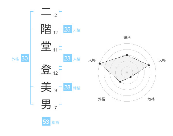 二階堂 登美男さんを姓名の画数から五運を鑑定
