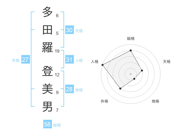 多田羅 登美男さんを姓名の画数から五運を鑑定