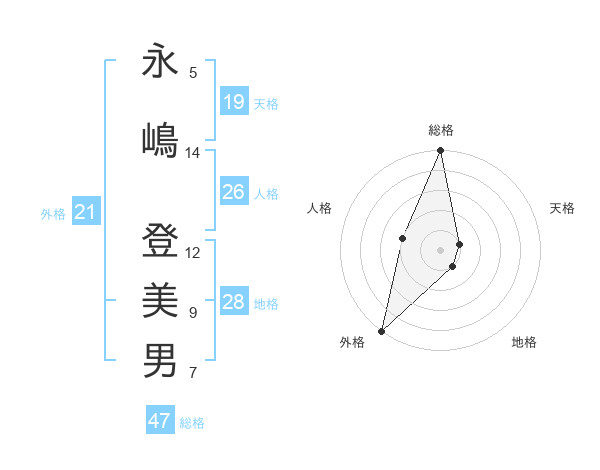 永嶋 登美男さんの総格は47画の5点!