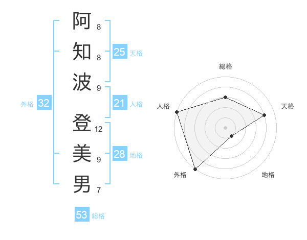 阿知波 登美男さんを姓名の画数から五運を鑑定