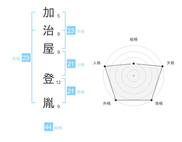 加治屋 登胤さんの天格は23画の5点