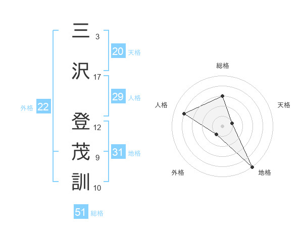 三沢 登茂訓さんを姓名の画数から五運を鑑定