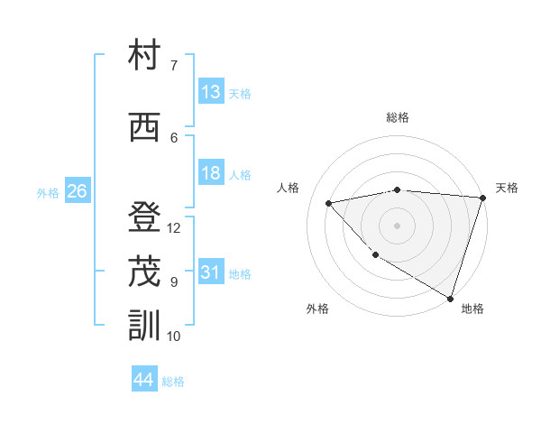 村西 登茂訓さんを姓名の画数から五運を鑑定