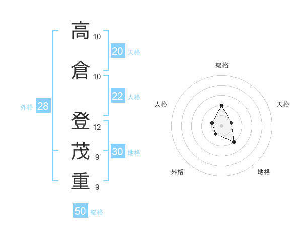 高倉 登茂重さんの総格は50画の2点!