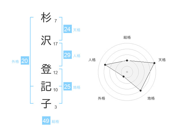 杉沢 登記子さんを姓名の画数から五運を鑑定