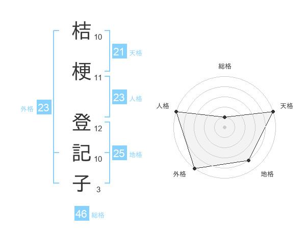 桔梗 登記子さんの外格は23画の5点