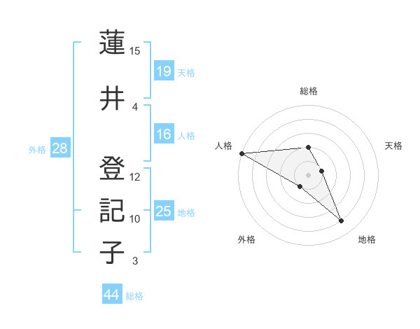 蓮井 登記子さんの総格は44画の2点!