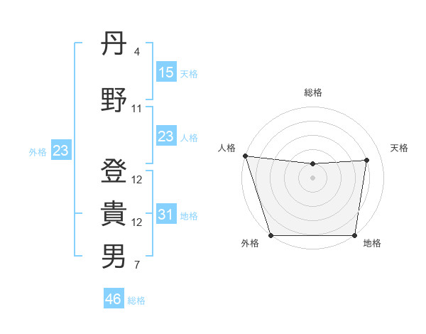 丹野 登貴男さんを姓名の画数から五運を鑑定