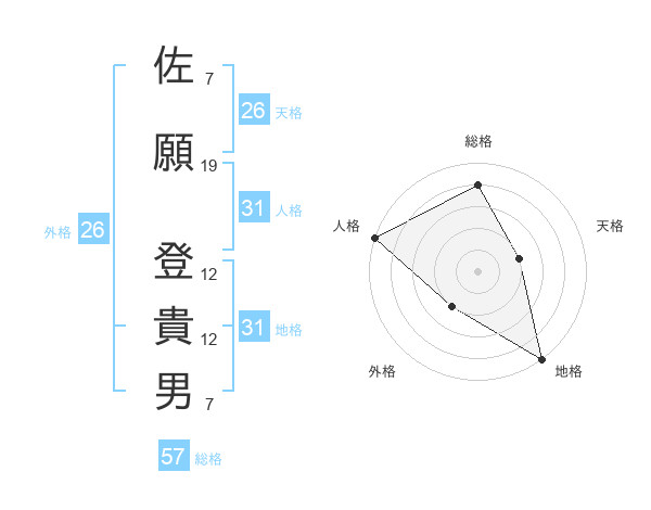 佐願 登貴男さんを姓名の画数から五運を鑑定