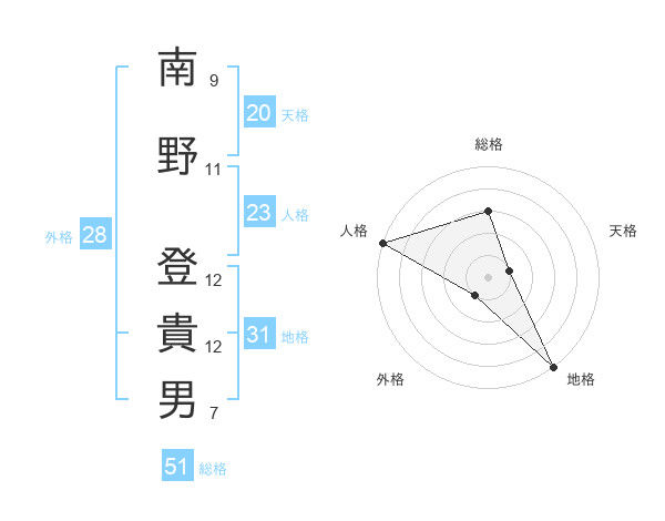 南野 登貴男さんを姓名の画数から五運を鑑定