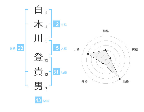 白木川 登貴男さんを姓名の画数から五運を鑑定