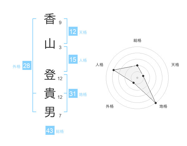香山 登貴男さんの総格は43画の2点!