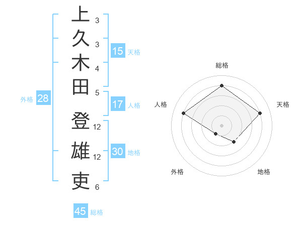 上久木田 登雄吏さんを姓名の画数から五運を鑑定