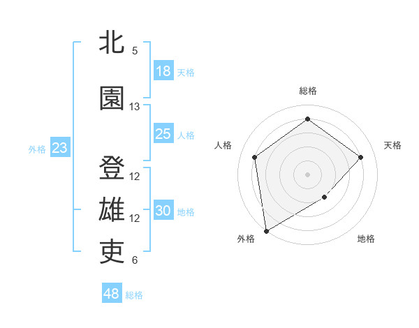 北園 登雄吏さんを姓名の画数から五運を鑑定