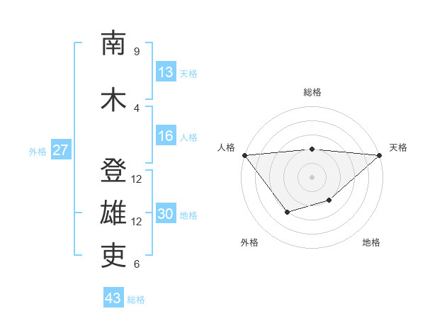 南木 登雄吏さんを姓名の画数から五運を鑑定