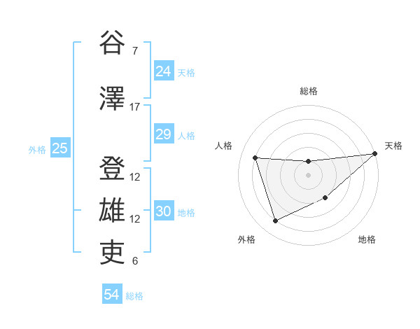 谷澤 登雄吏さんの天格は24画の5点!