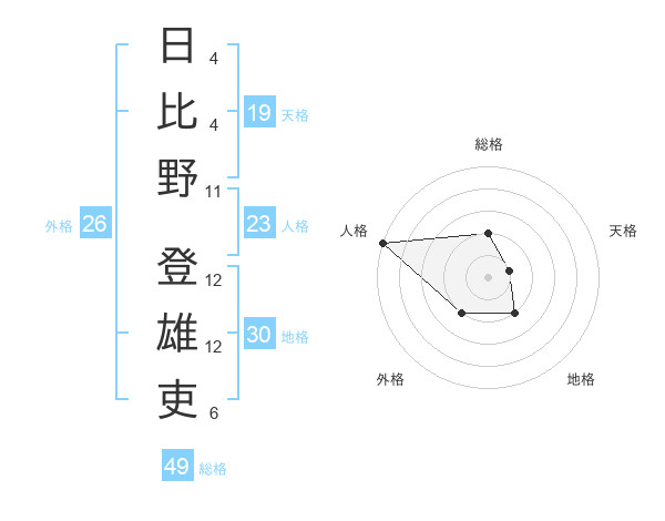 日比野 登雄吏さんの天格は19画の1点