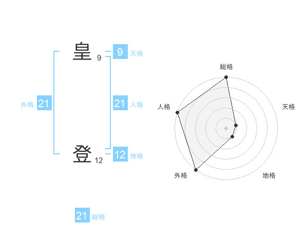 皇 登さんの総格は21画の5点!