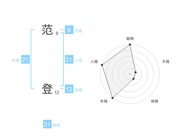 范 登さんの外格は21画の5点!