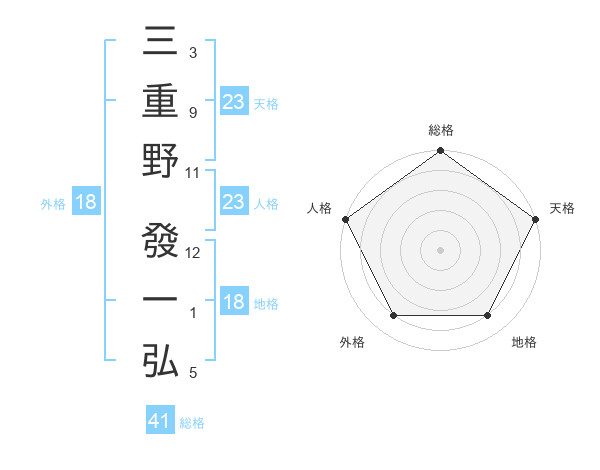 三重野 發一弘さんを姓名の画数から五運を鑑定