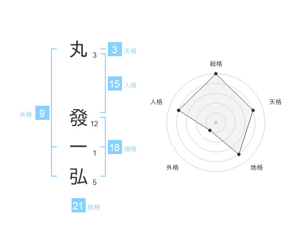 丸 發一弘さんを姓名の画数から五運を鑑定